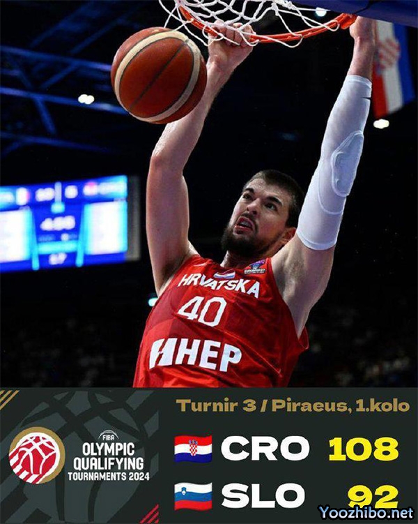 直播车讯 北京时间2024年7月3日凌晨2点,在2024年巴黎奥运会男篮资格赛小组赛阶段的一场比赛中,斯洛文尼亚男篮以92-108不敌克罗地亚男篮。