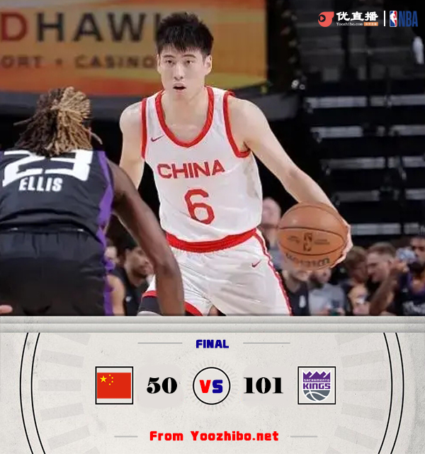 直播车7月7日讯 NBA夏季联赛加州经典赛,中国男篮对阵国王。开场后基翁-埃利斯手感火热连连拿分,中国男篮主要围绕廖三宁和余嘉豪发动进攻,程帅澎替补登场后接连单打得手,但国王连续三分将分差保持在两位数。第二节中国男篮进攻表现不佳并且失误频频,国王虽然前半节命中率下降,但后半节重拾手感在半场结束时将分差拉大到23分。下半场回来中国男篮进攻端更加艰难单节仅得到7分,第四节依旧只有程帅澎能够在进攻端打出表现,场上分差持续被拉大,最终中国男篮50-101惨败给国王。