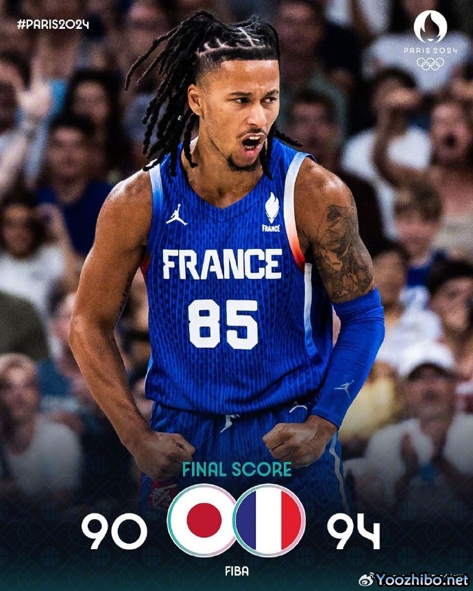 直播车7月31日讯 奥运男篮小组赛B组,法国对阵日本。一开场,双方很快陷入缠斗,比分始终紧咬,法国不断冲击篮筐拿分,日本连中三分还以颜色,亚布塞莱连中三分,日本内外开花一波8-0一度反超比分,法国及时回暖完成9-2的小高潮,半场战罢法国49-44领先5分。下半场,日本率先发力打出8-2反超比分,此后双方展开拉锯战,比分交替领先,法国一波7-0占据主动,末节八村塁累计违体犯规被驱逐,河村勇辉3+1连得6分带队反超,双方争夺陷入白热化,戈贝尔误伤巴图姆导致后者嘴里出血,关键时刻富尼耶三分扳平比分,河村永辉4罚全中后斯特拉泽尔3+1再度抹平分差,河村永辉超远三分绝杀不中,双方进入加时。加时赛,文班亚马统治攻防两端,个人连得8分,日本连中三分但依旧无力回天。最终,法国加时94-90力克日本。