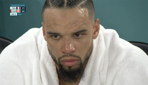 末节巴雷特连得5分助加拿大追到6分,亚历山大两罚不中以及上篮被帽,法国4-0稳住局面,之后狄龙强吃富尼耶得手,亚历山大两罚一中以及长传助攻巴雷特暴扣;关键时刻,富尼耶挺身而出,外线轰进三分,强硬上篮以及命中制胜三分,亚历山大战斗到最后一刻仍无济于事,最终输掉比赛止步八强。