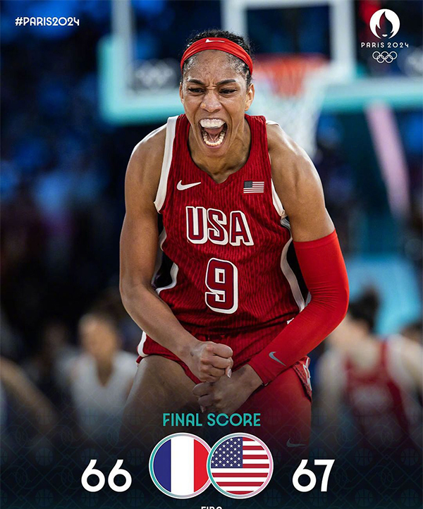 美国67-66战胜法国夺下第40金 威尔逊21+13 威廉姆斯19+7