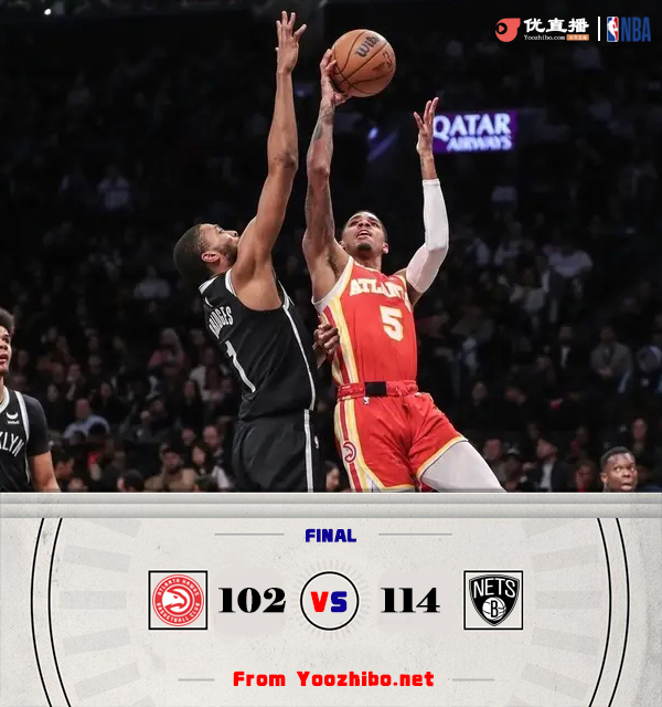 直播车3月3日讯 NBA常规赛,篮网主场迎战老鹰。篮网东部第十一,老鹰东部第十。上半场,老鹰反客为主率先发力,连中三分取得两位数领先,篮网连投带罚拿分追赶,次节老鹰连中三分重获两位数优势,布里奇斯挺身而出单节拿到15分帮助球队迅速缩小分差,半场战罢老鹰62-60领先篮网。下半场,篮网率先发力打出15-2反超比分,老鹰连投带罚拿分止血,末节篮网持续发力扩大优势,老鹰大势已去无力回天。最终,篮网114-102击败老鹰,主场过关。