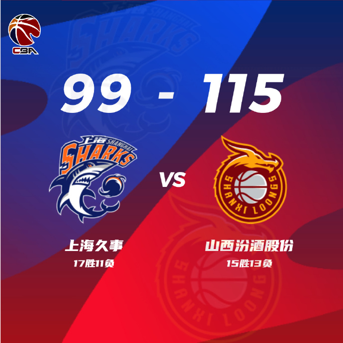 单节比分:24-25、38-18、26-22、27-34(山西在前)