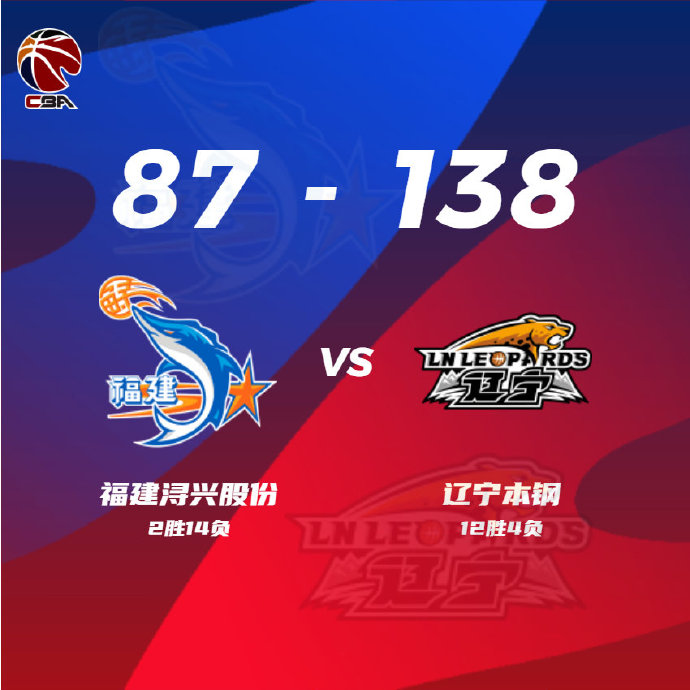 直播车12月21日讯 CBA常规赛第二阶段继续进行,福建对阵辽宁,福建本赛季状态糟糕,目前2胜13负排在积分榜第19位,而辽宁则是11胜4负高居次席,两队实力还是有差距,本场比赛大名单福建8人,而辽宁仅7人。比赛开始付豪接连内线强打命中帮助辽宁先声夺人,而福建除了达柳斯-亚当斯没有手感外,其他队员也能给出回应,无奈弗格联手赵继伟外线下起三分雨一波16-1的攻击波直接拉开20分的分差,随后辽宁进攻端越打越好,付豪、张镇麟和丛明晨都继续取分,分差逐渐来到50分以上,比赛直接失去悬念,最终辽宁138-87狂胜福建,送对手4连败。