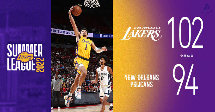 直播车讯7月16日讯 NBA拉斯维加斯夏季联赛继续进行,湖人对阵鹈鹕,湖人新秀中看点有两位名宿之子,小皮蓬和小奥尼尔,还有35号秀克里斯蒂;而鹈鹕8号秀丹尼尔斯还没有亮相。湖人上来先打出不错开局,但鹈鹕也能凭借中投手感咬住比分,佩蒂接连扔进三分连砍8分帮助鹈鹕取得领先,次节鹈鹕进攻端显得无章可言,而湖人外线则是火力全开,以斯维德为首的射手群接连下起三分雨,湖人也连续打出小高潮反超了8分。第三节,斯维德继续保持上半场的火热手感里突外投帮助湖人将分差拉开至双位数,鹈鹕多次缩小分差,湖人依靠外线三分总能回应,末节湖人换上替补练兵,但外线手感能保持住,分差保持在10分左右,最终湖人力克鹈鹕。