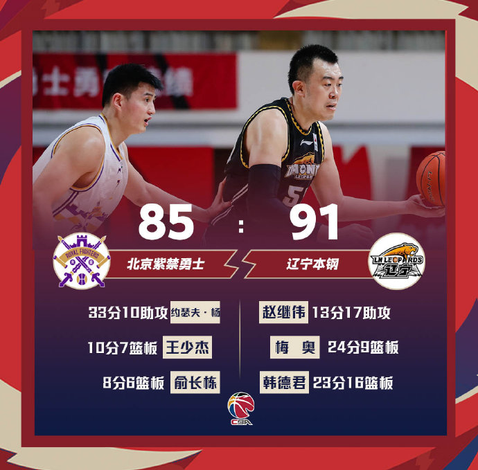 北控(22-25):约瑟夫-杨33分4篮板10助攻,王少杰10分7篮板,俞长栋8分6篮板,张帆9分3篮板,李根8分2助攻,王子瑞7分,邹雨宸3分4篮板。
