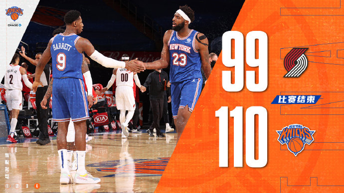 尼克斯:兰德尔22分11篮板4助攻,小佩顿22分7篮板4助攻,巴雷特18分7篮板3助攻,伯克斯16分8篮板2抢断,奎克利12分3助攻,布洛克10分2盖帽。