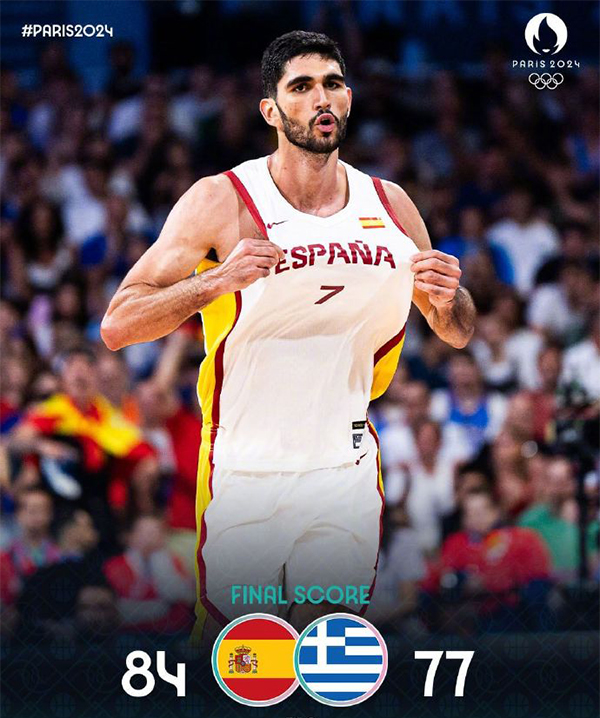 直播车讯 7月30日 奥运会男篮A组迎来一场关键对决,西班牙男篮和希腊男篮狭路相逢,两支球队在各自的首场比赛中双双输球遭遇开门黑。首节之争双方状态相当且外线手感都非常不错,希腊方面字母哥联手卡拉西斯和帕帕扬尼斯,三人合力拿下球队第一节22分里的20分;西班牙这边阿尔马达表现神勇拿下10分紧追比分;次节西班牙外线突然下起三分雨,他们这一节命中7记三分,上半场三分球17投11中的命中率直接打崩希腊,节中送出一波19-5的攻势一举扭转局势并带着14分优势进入下半场。休息归来西班牙男篮状态迅速回落5分钟里仅得6分;希腊抓住机会送出跨节16-6的攻势并一度追平比分;不过最后时刻西班牙及时站出来用一波8-0重新拉开比分奠定胜局,字母哥则错失绝平三分。最终,西班牙力克希腊拿下比赛,后者遭遇2连败。
