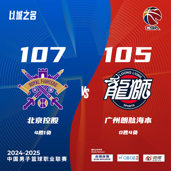 直播车10月23日讯 CBA常规赛,北控主场迎战广州。上半场,双方展开对攻,北控持续发力取得两位数领先,广州内外开花迅速抹平分差,此后双方陷入缠斗,比分交替领先,北控连造杀伤以61-56领先结束第二节。下半场,两队依旧打得难解难分,北控突然发力打出8-0的攻击波,张帆三分将分差拉开到两位数,广州奋力反击回敬19-3的进攻高潮,关键时刻广州连续打铁,最终,北控107-105力克广州,送给对手4连败。