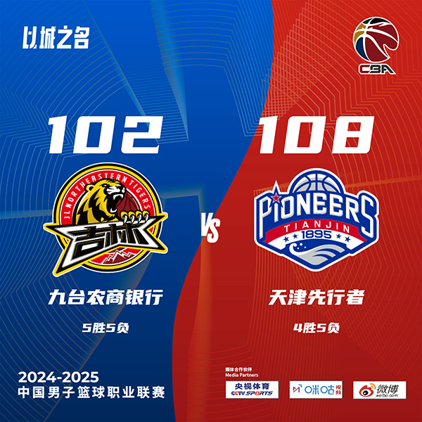 直播车11月3日讯 CBA常规赛,吉林主场迎战天津,吉林目前5胜4负,而天津3连败后3胜5负。比赛开始,琼斯接连送出助攻后接连攻筐取分,带领吉林打出20-6梦幻开局,林庭谦一攻一传帮助天津回应8-0止血,首节吉林领先7分,次节吉林重新拉开双位数领先,但郑昊燃接连三分再次止血,琼斯和姜伟泽也能三分强势回应,双方展开拉锯战,半场吉林领先到11分。下半场,吉林进攻端有些断电,天津外线多点开花连中5记三分一度反超比分,琼斯站出来里突外投连砍11分强势回应,三节结束双方打成78平,末节琼斯继续撑起球队进攻,但林庭谦有攻有传联手大卫-詹姆斯再次反超回来,比赛进入白热化,李宗霖关键三分,最终天津108-102力克吉林。
