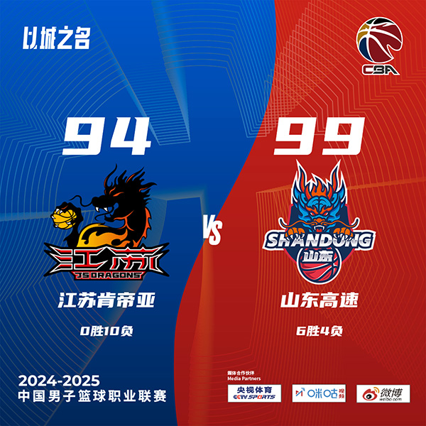 直播车11月3日讯 CBA常规赛首阶段收官战,江苏主场迎战山东,开赛至今江苏苦吞9连败,是目前联盟唯一不胜球队,山东上场力克北控,目前5胜4负排在联赛第10位。此役开打后双方陷入缠斗,山东双外援克里斯和盖利联手取分,蒋浩然连投带罚强势回应,末段江苏开始发力后来居上,首节结束时江苏领先2分,次节回来,双方进攻均陷入停滞,两队单节得分均未超过20分,蒋浩然联手崔晓龙率队保持优势,半场战罢,江苏依然领先1分。易边再战后江苏外援特奎维恩-史密斯突然爆发,单节飚中4记三分狂砍21分,末段场上形势风云突变,山东回敬11-2攻击波夺回优势,三节结束后山东反超1分,末节决战,两队你来我往交替领先,决胜时刻高诗岩造杀伤罚球拿到本场首分,江苏追分未果,陈培东联手盖利终结悬念,最终山东99-94击败江苏送对手开局10连败。
