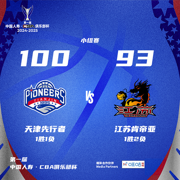 直播车11月15日讯 CBA俱乐部杯定州赛区,天津对阵江苏。上半场,天津双外援率先发力帮助球队取得领先,江苏内外开花奋力反击,古德温得分助攻一肩挑带队反超,拉维特挺身而出连续拿分稳住局势,大卫-詹姆斯也延续火力,半场战罢天津55-49领先江苏。下半场,天津率先发力,多点开花将分差拉开到20分以上,江苏奋力反击回敬13-0的攻击波,末节双方陷入缠斗,江苏多次迫近比分,天津及时回暖锁定胜局。最终,天津100-93击败江苏。