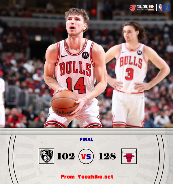 直播车讯北京时间12月3日讯 NBA常规赛,篮网对阵公牛,两队最近都是遭遇2连败,崔永熙本场比赛进入大名单,篮网本场比赛多人轮换。比赛开始后两队你来我往连续打成平手,篮网这边主要靠施罗德进攻,公牛则是布泽利斯扮演奇兵角色外线连连三分命中。第二节虽然篮网一度打出11-3的攻势取得领先,但随后他们进攻断电,公牛回应一波高潮将比分反超。下半场回来公牛攻势连连将分差拉大,篮网进攻端表现不理想,场上分差来到29分,在第四节还剩5分39秒时,崔永熙替补登场,他获得几次出手机会但只打进一个上篮,最终篮网102-128输给公牛遭遇3连败。