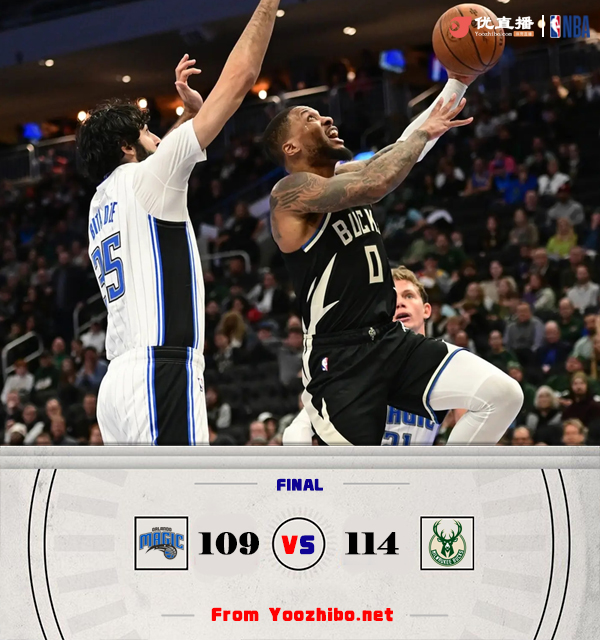 直播车讯北京时间12月11日讯 NBA杯东部半决赛率先打响,雄鹿主场迎战魔术,魔术这边,班凯罗和小瓦格纳接连伤停,而雄鹿则尽遣主力,普林斯和助教哈姆NBA杯战绩11胜0负保持不败。此役一上来双方稍显慢热互相试探,魔术率先找到感觉,多点开花的他们逐渐确立优势,字母哥连投带罚苦苦支撑,首节结束时魔术领先8分,次节回来,雄鹿状态复苏回敬10-3攻击波缩小分差,中段双方你来我往陷入僵持,波蒂斯突然发力单节独得12分,字母哥和利拉德续上火力,半场战罢,雄鹿反超1分。易边再战后双方进攻火力放缓,魔术进攻滞涩单节仅得到11分,字母哥予取予求率队扩大优势,雄鹿带着8分优势进入末节,末节上来,萨格斯突然爆发率队抹平分差,决胜时刻利拉德里突外投连拿7分,字母哥关键两罚稳稳命中,霍华德造犯规后前两罚全中,但最后一罚故意不中但违例,利拉德连中罚球终结悬念,最终雄鹿114-109力克对手。