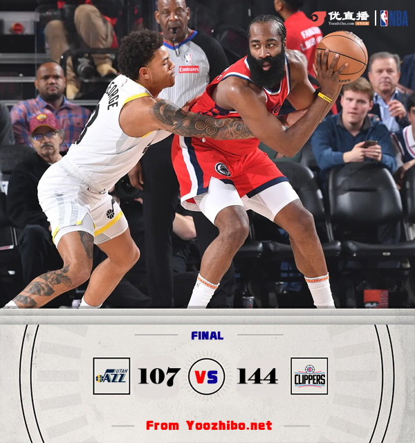 直播车讯北京时间12月17日讯 NBA常规赛,快船今日迎战爵士,前者近来情况不佳遭遇三连败,后者也是两连败,此役曼恩和德里克-琼斯缺战。比赛上来,快船就率先进入状态,他们攻势如潮打出14-3的完美开局,爵士虽然暂停调整但也无济于事,哈登单节命中5记三分球并造成两次三分犯规,首节轰下24分带领球队同样领先对手24分,次节快船又是连拿八分将分差扩大到三十分以上,爵士虽然进攻有所回暖但依旧无法限制对手的攻势,半场结束时快船已经得到81分并建立起34分的巨大领先优势;下半场回来,爵士与对手展开对攻,不过分差一直保持在三十分左右,比赛到了末节早已失去悬念,最终快船大胜爵士,结束三连败的同时也送给后者三连败。