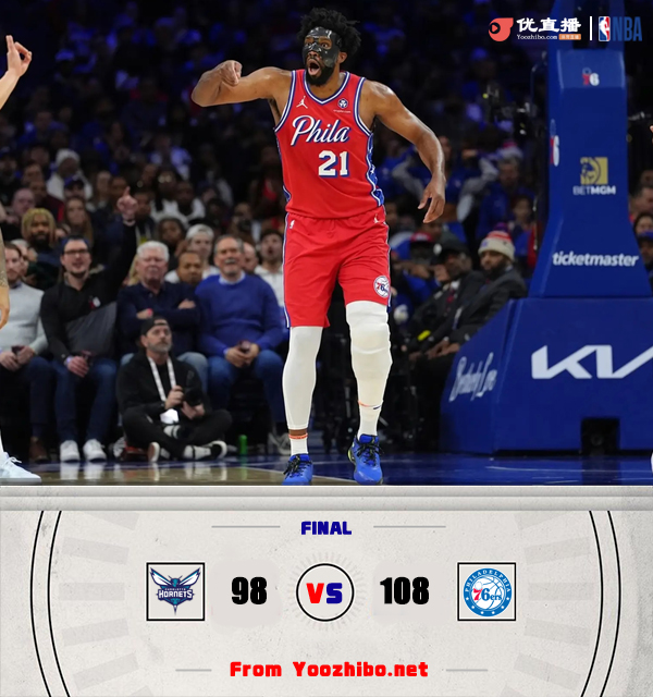 直播车讯 北京时间12月21日讯 NBA常规赛激战正酣,76人主场迎战黄蜂,此前鼻窦骨折的恩比德带着面具复出,拉梅洛-鲍尔因左小腿伤势缺阵,76人目前8胜16负仅位列东部倒数第四,黄蜂遭遇3连败后战绩来到7胜20负,排在东部倒数第三。此役一上来马克西早早开张连中三分,连投带罚单节砍下15分,恩比德和乌布雷续上火力,黄蜂进攻滞涩难以招架,76人连续轰出得分高潮拉开比分,首节结束时76人确立18分优势,次节回来,76人进攻火力放缓,但黄蜂依然无法打出追分攻击波,马丁延续手感率队稍稍缩小分差,半场战罢,76人依然领先12分。易边再战后两队你来我往拉开对攻,恩比德持续杀伤罚球涨分,乌布雷压哨出手命中,三节结束后76人保持14分优势,末节上来,黄蜂一度将分差追至4分,但恩比德连续取分率队守住胜果,最终76人108-98击败黄蜂送对手4连败。