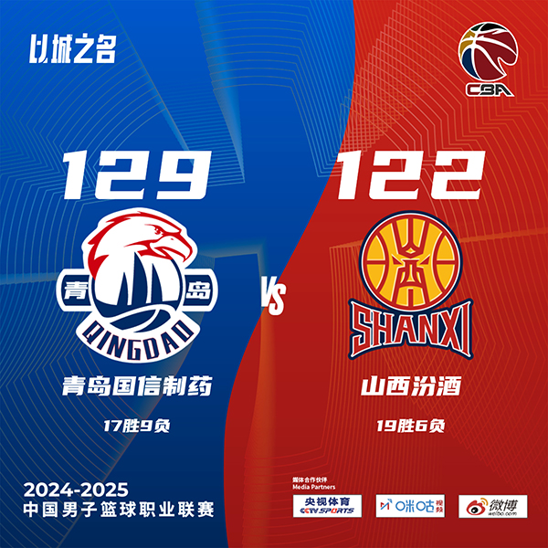 直播车讯北京时间1月3日讯 CBA常规赛,青岛主场迎战山西。青岛16胜9负排联赛第八,山西19胜5负高居联赛第二。比赛开始,青岛率先发力,内外开花轰出25-6的完美开局,山西不断冲击内线苦苦追赶,次节青岛命中率下降,山西外线开火连中3记三分迅速缩小分差,半场战罢青岛62-57领先山西。易边再战,双方大打对攻,青岛内外开花保持优势,末节山西命中率下降,青岛持续输出扩大领先,山西大势已去无力回天韦瑟斯庞和段昂君都犯满离场。最终,青岛129-122击败山西,主场过关。