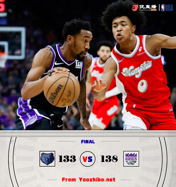 直播车1月4日讯 NBA常规赛,灰熊客场挑战国王。灰熊23胜11负,国王15胜19负。上半场,双方开场便大打对攻,国王里突外投拿分,灰熊多点开花给出回应,蒙克和莱尔斯手感火热,国王首节轰下46分领先灰熊14分,次节灰熊火力更猛,韦尔斯和小贾伦-杰克逊联手带队缩小分差,灰熊次节也砍40分,半场战罢国王76-72领先灰熊。易边再战,国王9-0扩大优势,韦尔斯单节11分帮助灰熊咬住比分,末节双方争夺陷入白热化,福克斯击中小皮蓬头部被吹一级恶意犯规,蒙克连得8分带队取得两位数领先,灰熊苦苦追赶无果。最终,国王138-133力克灰熊,主场过关。