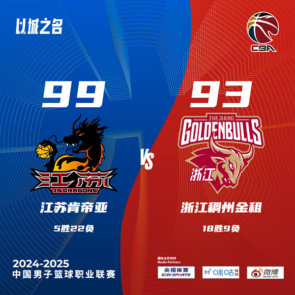 直播车讯北京时间1月5日讯 CBA常规赛,江苏今日迎战浙江,前者上场比赛战胜广州,后者则是遭遇两连败,此役吴前、程帅澎和余嘉豪缺战。比赛上来,浙江就展示出了火热的进攻状态,一波15-4的开局迅速打停江苏,调整过后江苏并没有改变场上局势,他们单节只拿到18分,次节浙江命中率出现下滑,江苏这边刘泽希单节独得11分带队追分,半场结束时分差还剩8分;下半场回来,江苏继续追分,并利用一波9-0的小高潮成功实现反超,之后两队开始保持拉锯,关键时刻江苏直接打出一波9-0杀死比赛,最终江苏力克浙江迎来赛季首次连胜。