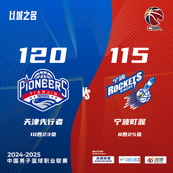 直播车讯 北京时间1月19日讯 CBA常规赛,天津主场迎战宁波。天津9胜23负排联赛第15,宁波8胜24负紧随其后。上半场,天津连中三分打出15-5的开局,宁波不断冲击内线连投带罚完成反超,此后双方陷入缠斗,比分交替领先,林庭谦连中三分带队打出10-2的攻击波占据主动,宁波连投带罚顽强追赶,半场战罢天津57-52领先宁波。下半场,天津占得先机取得两位数优势,宁波内外开花缩小分差,末节天津稳扎稳打保持优势,宁波采用犯规战术,乔丹-霍华德连中三分将分差迫近到只剩2分,林庭谦两罚全中。最终,天津120-115击败宁波,送给对手9连败。