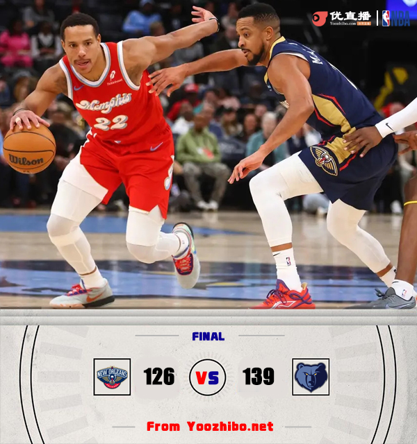 直播车讯 北京时间11月25日讯 NBA常规赛,灰熊主场迎战鹈鹕。此役莫兰特缺阵。灰熊西部第三,鹈鹕西部倒数第二。上半场,灰熊率先发力,多点开花打出16-7的开局,鹈鹕不断冲击内线连投带罚迫近比分,次节鹈鹕火力全开,里突外投连续拿分强势反超,灰熊努力追赶,半场战罢鹈鹕71-62领先灰熊。下半场,灰熊大举反击,贝恩单节独得14分带队完成反超,末节灰熊稳扎稳打保持优势,最终,灰熊139-126击退鹈鹕。