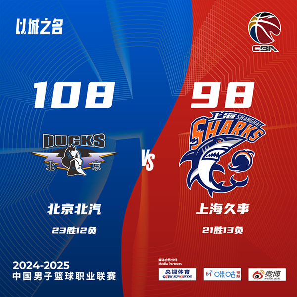 直播车讯北京时间2月27日,CBA常规赛北京北汽主场迎战上海久事,本场上海背靠背作战,王哲林缺阵。首节双方紧咬比分,第二节后半段北京一波高潮拉开分差,半场北京61-52上海,第三节北京一度领先14分,随后上海李弘权、布雷德索联手追至2分分差,末节后半段北京再度打出反击高潮收下比赛,最终北京108-98上海。