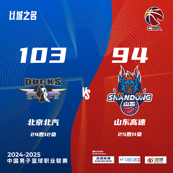 直播车讯北京时间3月5日讯 CBA常规赛第三阶段战火重燃,北京主场迎战山东,北京目前23胜12负位列联赛第5,山东25胜10负排在第3。首节开打后双方稍显慢热,周琦连投带罚不断杀伤,山东双外援克里斯和盖利联手回应,山东中段开始发力后来居上,首节结束时山东领先7分,次节回来,山东进攻出现停滞,曾凡博突然爆发单节贡献13分,率领北京一举反超,半场战罢,北京反超3分。易边再战后山东进攻依然没有起色,曾凡博予取予求率队拉开比分,三节结束后北京继续领先7分,末节上来,陶汉林跳投打进后山东一度反超,北京内外结合迅速回敬12-2攻击波,山东追分未果,最终北京103-94力克对手。