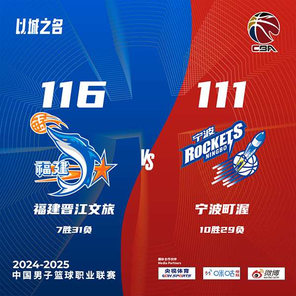 直播车讯北京时间3月12日讯 CBA常规赛,福建主场迎战宁波,福建2连败后6胜31负联盟垫底,宁波2连胜后10胜28负联盟第16位。比赛开始,福建率先发力打出10-4开局,宁鸿宇状态出色弹无虚发连得10分回应,邹阳手感也不错,双方展开对攻战,比分胶着,首节宁波领先2分,次节乔丹-霍华德上来连中三分砍下10分助宁波拉开比分,但奎因-库克手感不错能回应,联赛路易斯-金连续4记三分反超比分,半场福建领先3分。下半场,双方命中率都有下降,但比分还是很胶着,王子瑞接连突破上篮砍下7分帮助宁波反超,但路易斯-金联手库克回应7-0守住2分领先,末节诺伊发力里突外投帮助宁波取得领先,刘金雨关键三分,路易斯-金里突外投连砍7分再反超,比赛趋于白热化,马奇关键两次失误,黎伊扬和路易斯-金连续抢断帮助福建反超比分,邹阳失误后王俊杰也失误,邹阳两罚杀死比赛,宁鸿宇三分不中,最终福建116-111险胜宁波。