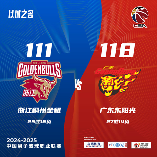 直播车讯北京时间3月16日讯 CBA常规赛继续进行,广东客场挑战浙江,浙江助教鞠鹏场边执教,丁伟担任球队顾问,目前浙江25胜15负位列联赛第8,广东26胜14负排在联赛第6位。首节开打后浙江率先进入状态,琼斯内外结合独得12分,约克连投带罚续上火力,两人联手率队确立优势,首节结束时浙江领先11分,次节回来,浙江进攻出现停滞,广东回敬12-0攻击波蚕食分差,末段贝兹利和伯克连中三分,半场战罢,广东反超1分。短暂休整后广东延续火力内外开花,浙江进攻滞涩未能及时回应,三节结束后广东已经领先10分,末节决战,场上形势风云突变,约克无人可挡予取予求,浙江一度反超比分,但伯克连投带罚守住胜果,最终广东118-111力克对手。