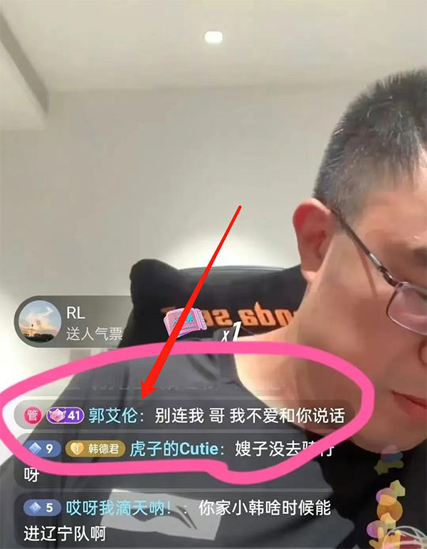 接下来,我们再来说说郭艾伦这边,没有入选中国男篮,郭艾伦这边是打打友谊赛,网上冲冲浪,小日子过得很舒服,近期,韩德君也是开启了直播和球迷唠嗑,巧的是韩德君发现了郭艾伦也在线,于是韩德君也是想要和郭艾伦发起直播的互动。