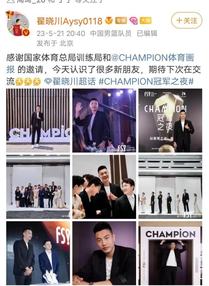 何为冠军之夜呢?据悉,为了更好的联手体育传媒共谋发展,体育总局和体育画报联手举办了冠军之夜的主题活动,这个活动也旨在让更多的球迷了解中国体育、爱上中国体育、关注中国体育,而为了让更多的人关注到中国男篮和推动中国男篮的发展,翟小川也是走上了男篮推荐官的新职务。