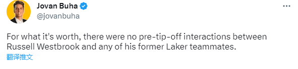 据名记报道,赛前,威少和湖人前队友詹姆斯、浓眉等人没有任何的互动。