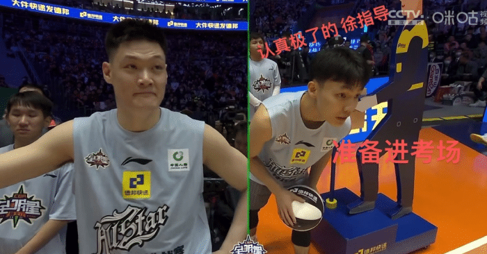 在技巧挑战赛的半决赛,徐杰对上的是郭艾伦,郭艾伦很强,强到郭艾伦在主持人介绍的时候,更多是在调侃和主持人互动,而此时的徐杰拿着一个篮球默默的进行运球的热身,寻找手感。