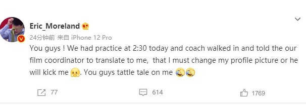 莫兰德头像非常有趣,还一度登上热搜榜,莫兰德更换头像非常频繁,从最开始的“盲僧”到五竹等,后期变成了调侃主帅杨鸣,引发热议。如今莫兰德换下了杨鸣的“丑照”,同时配文:“杨鸣教练走过来让录像师翻译给我听,勒令我必须把头像换了,否则他就会拿脚踹我。都怪你们这些家伙告我黑状。”