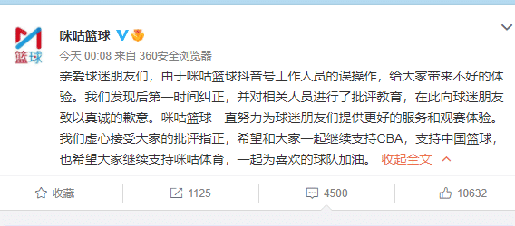 很快转播商进行了道歉,称是因为工作人员的失误导致的:“我们发现后第一时间纠正,并对相关人员进行了批评教育,在此向球迷朋友致以真诚的歉意。”不过很显然,还有很多的球迷并不接受这样的道歉。