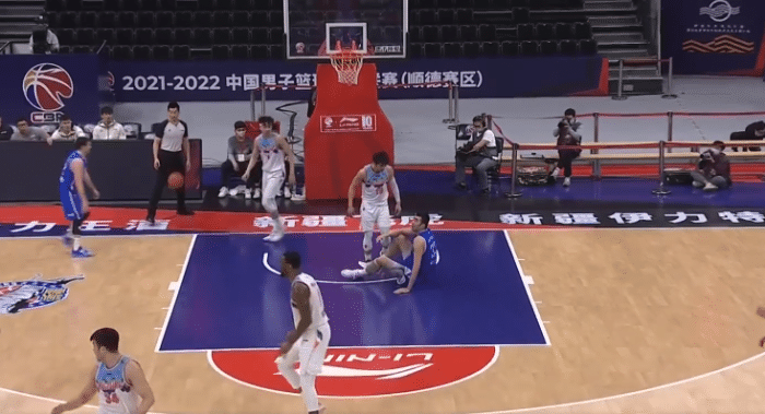 第一节,天津男篮进攻的机会,于德豪在篮下卡位的时候与张兆旭相互勾着胳膊,随后于德豪胳膊勾倒张兆旭,期间还有一个甩手的动作。张兆旭蹲在地上很无奈,朝着裁判示意对手有犯规的动作,他的对手孟子凯不干了,推搡于德豪,好在事态没有升级,孟子凯想为张兆旭出头,被吹罚了一个技术犯规。