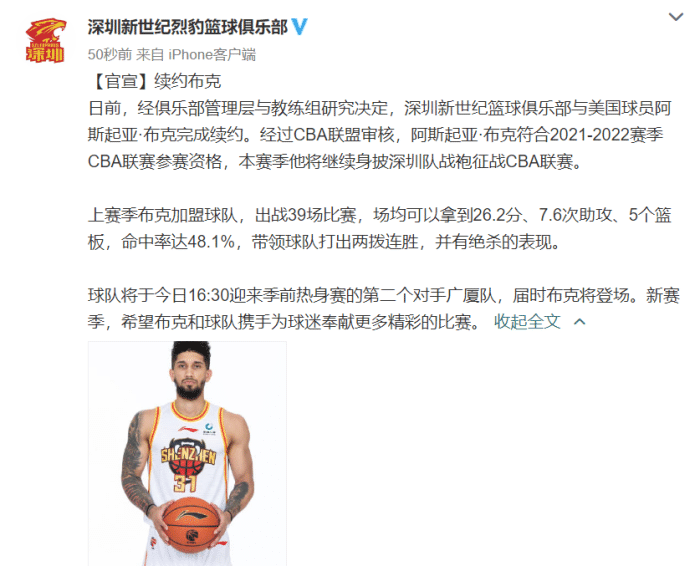新赛季,布克续约成功,这对深圳队的阵容稳定也是好事,上赛季的比赛,布克场均可以贡献26.2分、7.6次助攻、5个篮板,他和沈梓捷的配合也很默契。对于深圳队来说,新赛季如果可以打出自己的水平,进入前8问题不大,甚至有希望冲击更好成绩,布克的发挥就会成为关键。