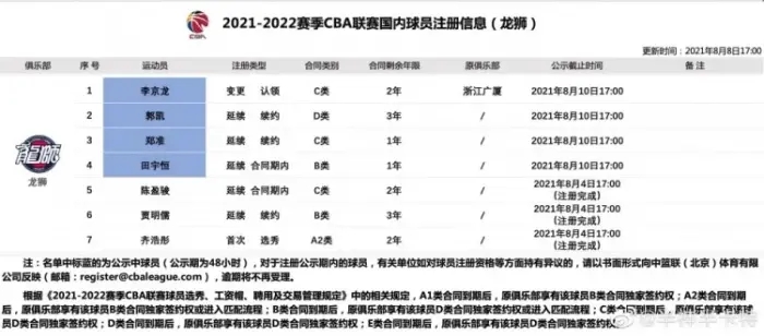 来源:直播车08-08 19:40直播车讯 CBA球员市场终于有动静了,广州龙狮大手一挥,接连完成4项签约,包括不出所料签下了冠军教头李春江的儿子李京龙,为两年C类合同。