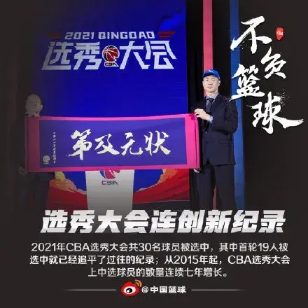 现在这种趋势越来越明显,今年CBA选秀大会再连创新纪录,共30名球员被选中,其中首轮就有19名球员,而2020年选秀大会才19人被选中。