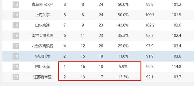 CBA奇葩排名:辽宁胜率第1却排第3 2胜13负不敌1胜16负