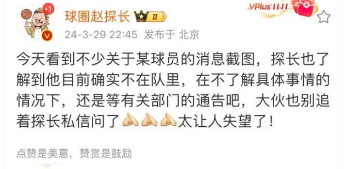 比如说此前郭昊文就被曝出脚踩几条船,因为场外感情的纠纷,郭昊文一度淡出了球迷的视线。随后的郭艾伦又因为伤病浪费了不少的时间,而在近期,知名篮球媒体人“导演我躺那”爆料因为个人原因,郭昊文将无限期离队,而在这条消息的评论区,其实大抵可以看到郭昊文发生了什么事情,从评论来看,这事大抵又是“下半身”的事情,如果爆料是真的,郭昊文的篮球生涯可能会遭受重击。
