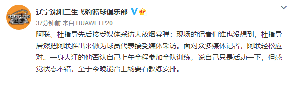 说起易建联,易建联的消息还真的来了,杜峰在赛前接受媒体采访时表现,阿联已经做好了今晚上场比赛的状态,随后杜峰还表示,阿联准备好了,全队就准备好了。