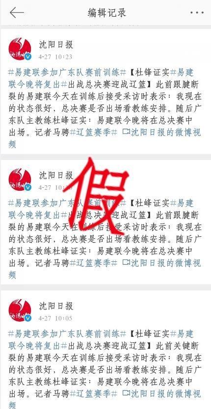 4月27日,《沈阳日报》官方社交媒体更新了动态,该媒体用“杜锋:易建联已经做好今晚总决赛出场的准备,辽篮是史上最强的球队”为目标进行了报道,在报道中,杜锋表示:之前跟腱断裂的易建联已经做好今晚总决赛出场的准备。