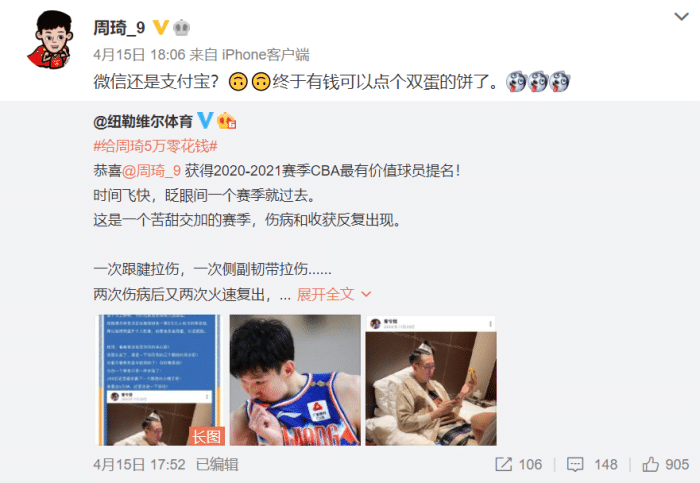 两人真是把梗玩地不亦乐乎,同时所表达的意思我们都明白!周琦的奖金是他的经纪公司给他发放的5万奖金跟CBA无关,这里可能内涵了MVP的一万奖金,一番互动直接杀疯了!但是别忘了你们还要带队在季后赛征战的,注意力放在球场上,不怕被联盟针对?新疆接下来的对手是山东,辽宁则将面对广厦和吉林之间的胜者!