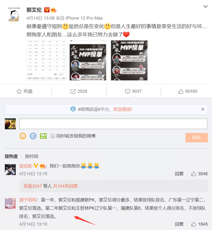 入选候选人是一回事,最终能否当选是另外一回事,这件事换到任何一个表现出色的运动员恐怕都会不开心!郭艾伦也是接连在微博上与网友互动发牢骚!他先是晒图吐槽CBA官方的规则一直在变,随后与高诗岩互动时回应对方的MVP称赞“等到了退役那天,就不会有这些事存在了。”