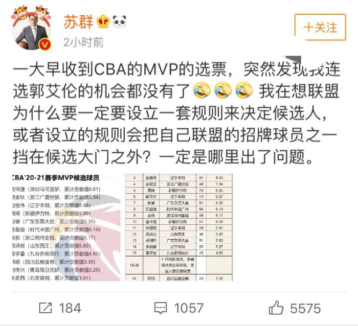 冲上热搜!郭艾伦无缘MVP候选人名单,苏群发声:一定是哪里出了问题