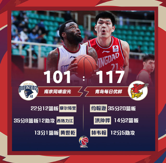 青岛117-101轻取同曦 约翰逊35+20 西热35+8+12