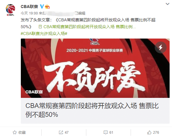 CBA官方并非不重视外界的意见,这不全明星赛后就给广大球迷带来了好消息。总而言之,大家考虑事情的角度有所不同,CBA官方希望比赛可以正常进行,所以才做了严格的规定,这在外界看来是很保守的。好在现在球迷们可以入场了,接下来大家就可以见证本赛季CBA总冠军花落谁家了!