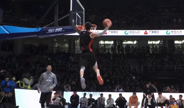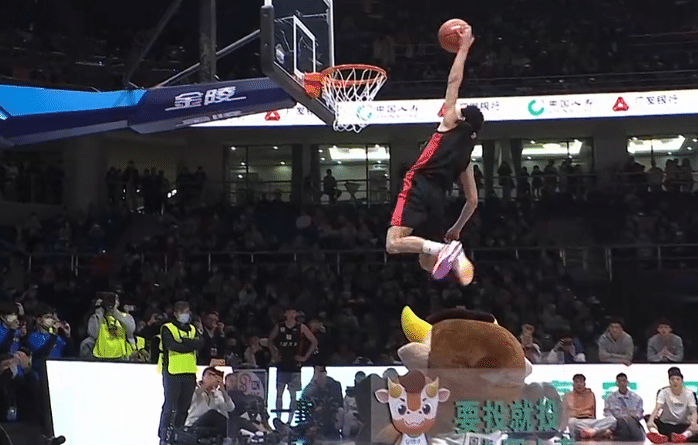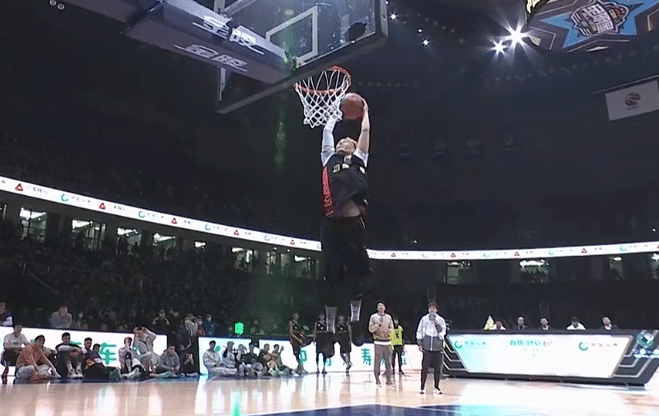重头戏扣篮大赛,汤杰第一扣为高高跃起后的双手扣篮(43分),张昊第一扣为拉杆的反手扣篮(41分),外卡选手陈登星第一扣,他先是高高将球抛起,随后自己接到球飞跃吉祥物完成暴扣(50分),这也是本场的第一个满分,张镇麟第一扣,原地起跳的大风车扣篮(50分),卢鹏羽第一扣,从左路杀入小回环换手扣篮(46分),张扬第一扣,折叠正面双手扣篮(39分)。