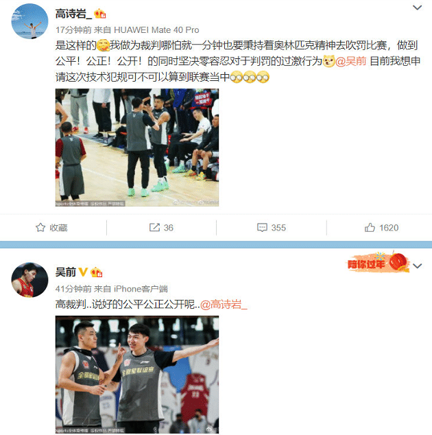 吴前更新社交媒体,称:“高裁判..说好的公平公正公开呢?”